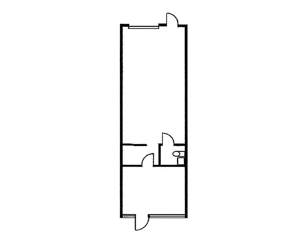 Reception area, restroom, warehouse with a roll up door.